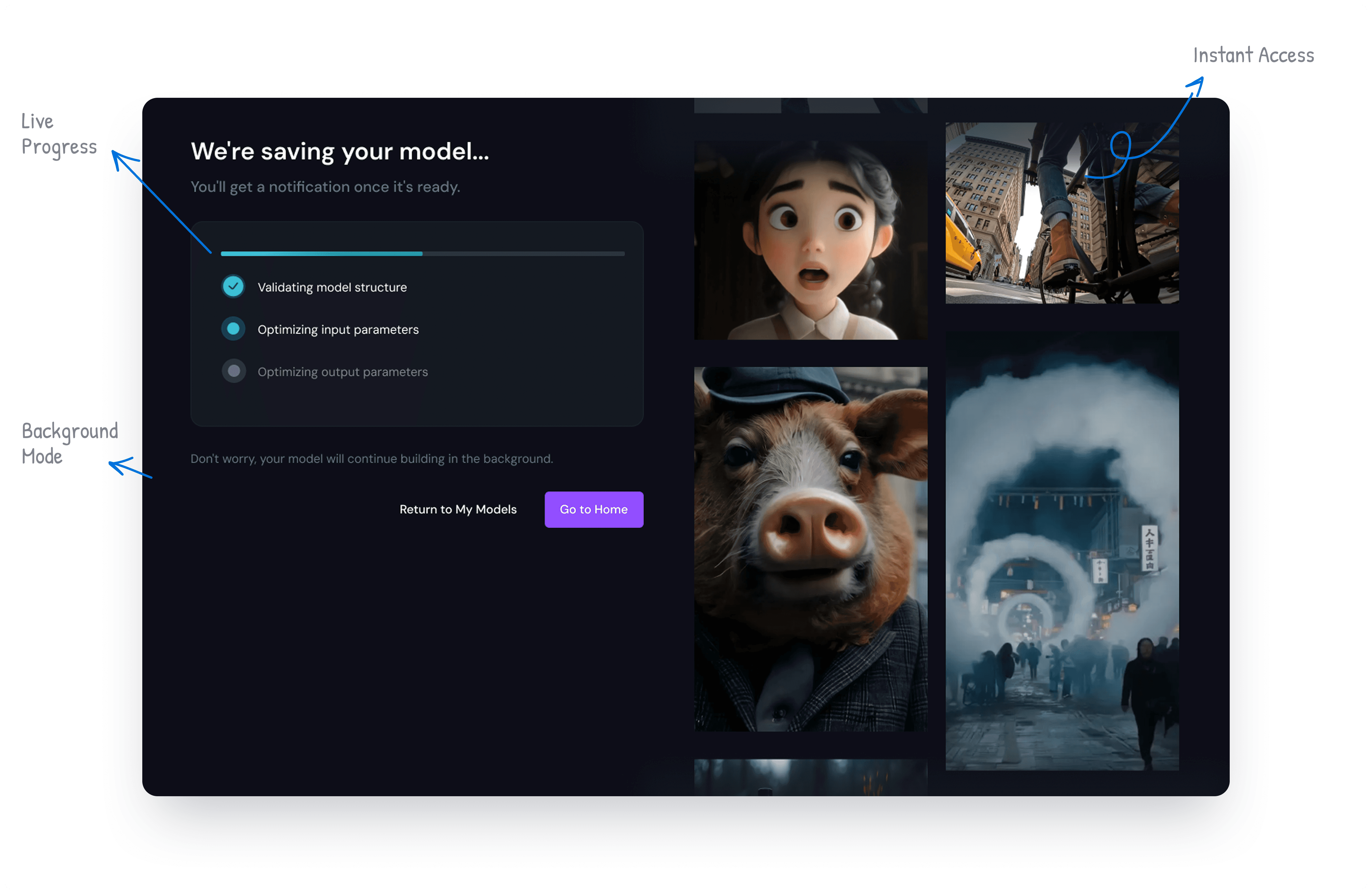 Instant Access: Users can click on generated results to enter their workflow and run new models immediately.