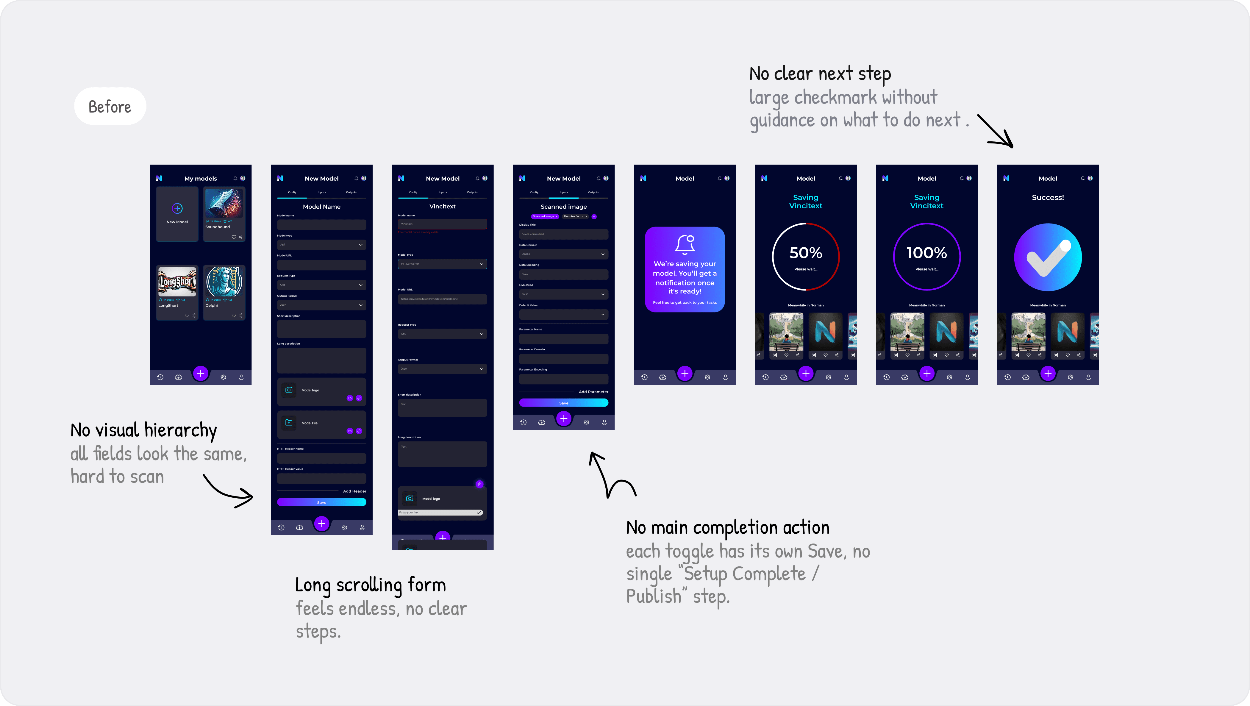 The old setup was confusing. Users didn't know which step was next or how much work was left.