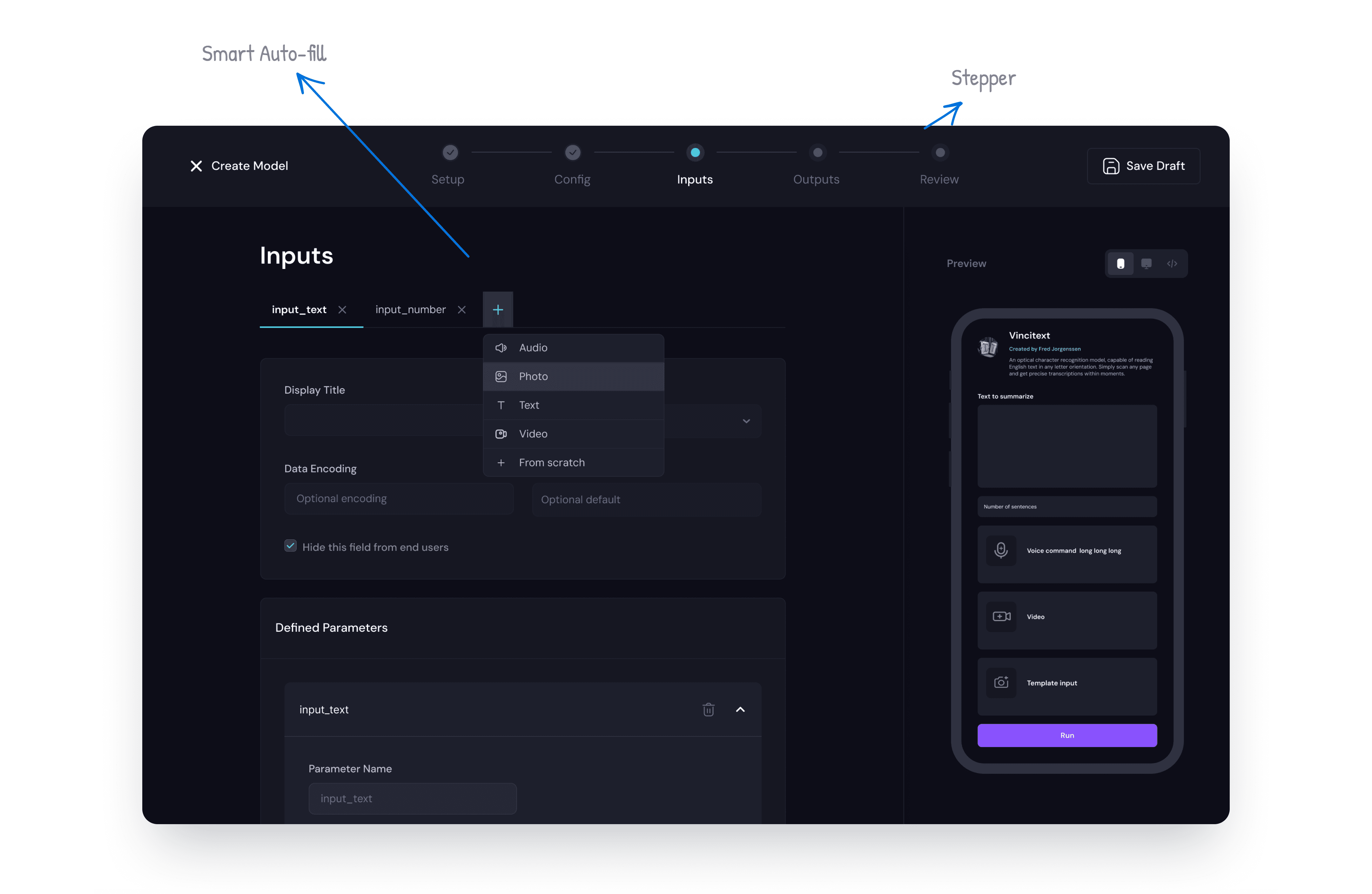 Smart Tooltips: Hovering over a model explains exactly what it does, so users don't have to guess before clicking.